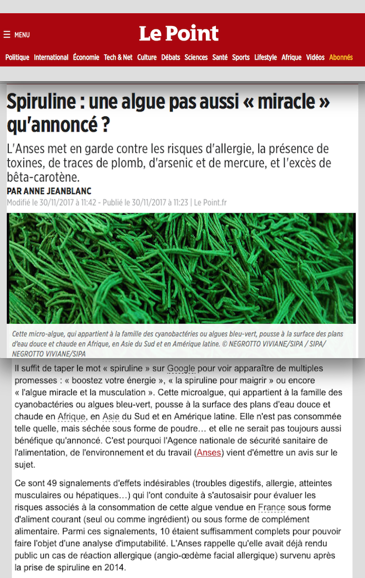 Spiruline : une algue pas aussi « miracle » qu'annoncé ? - Le Point